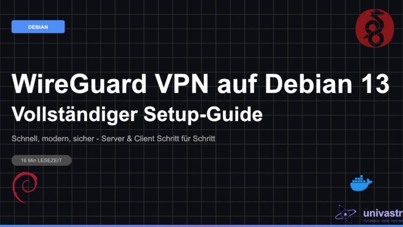 WireGuard VPN auf Debian 13 einrichten: Schnell, modern und sicher. Server- und Client-Konfiguration Schritt für Schritt mit Peer-Management und Firewall-Regeln.